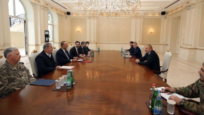 Anadolu Ajans - https://www.aa.com.tr/tr/dunya/azerbaycan-cumhurbaskani-aliyevcavusoglu-ve-akar-ile-gorustu/2036430. Anadolu Ajans - Dışişleri Bakanı Mevlüt Çavuşoğlu ve Milli Savunma Bakanı Hulusi Akar, Azerbaycan Cumhurbaşkanı İlham Aliyev ile Bakü'de görüştü: https://www.aa.com.tr/tr/dunya/azerbaycan-cumhurbaskani-aliyevcavusoglu-ve-akar-ile-gorustu/2036430