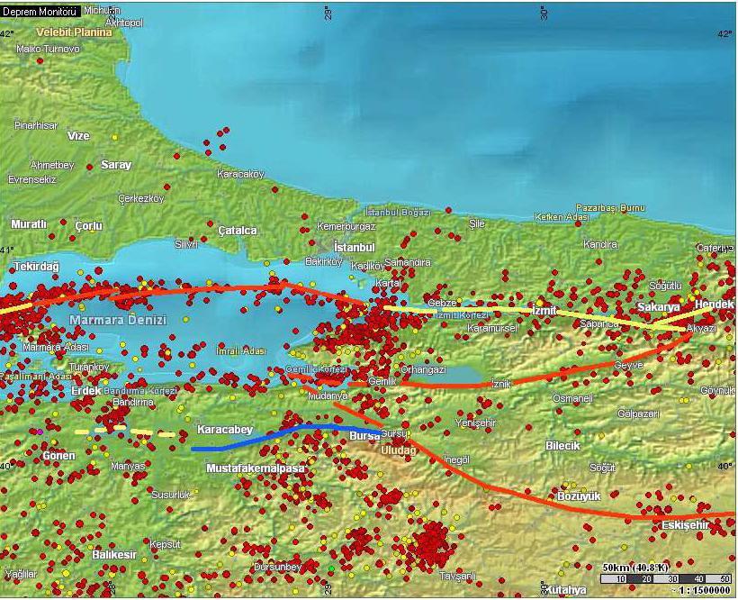 Sakarya-İzmit Marmara denizine uzanan fay Anadolu fay hattı yaşanacak olan bir kırılmada İstanbul ili için ciddi riskler taşımaktadır. Bu fayda yaşanacak olan kırılma sonuncunda İstanbul birinci derece etkiyecek ve Bursa ili destek konumunda olacaktır. Sakarya ilinden Gemlik körfezine ulaşan ve Eskişehir ilinden bursa merkezden geçen faylarda yaşanacak olan bir kırılma anında Bursa ili için ciddi risk oluşturmaktadır. (3)