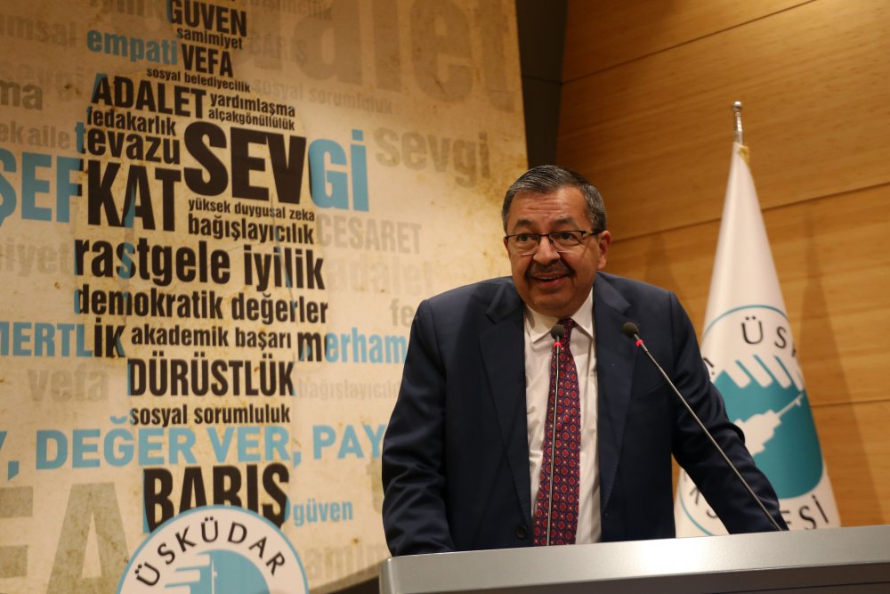 “Oluşturmaya çalıştığımız bu 24 altın değerlerin önemi bilimsel olarak doğrulanmıştır. Bu değerleri yaşatmazsak, bir üniversite olarak bununla ilgili bilgi üretmezsek, bilimsel dünyaya sunmazsak ve insanlık için bununla ilgili bir çalışmada bulunmazsak vebal altında kalırız. Onun için biz 6 yıldır değerler çalışmasını yapıyoruz. Bunu yaparken de topluma örnek olmuş, 24 altın değeri şahsında ve çevresinde sadece kendi çıkarı için yaşamayan, aynı zamanda yaşadığı topluma ve insanlığın geleceğine katkılarda bulunmaya çalışan güzel insanları tarihe not düşmek için göstermeye gayret ettik. Bu yıl 6.’ıncısını gerçekleştirdiğimiz Yüksek İnsani Değerler Ödülleri’ni vermeye devam edeceğiz. Yeni nesil gençler eski kuşaklardan farklı olarak varlık içinde olgunlaşmak durumundalar. Eski kuşaklar zorluk içinde olgunlaşıyorlardı. Varlık içinde olgunlaşan gençler değerleri kendileri öğrenemiyorlar. Yokluk görmemişler, fedakarlık, yardımlaşma gibi değerlerin önemi çok anlamıyorlar. Bu değerlerin kıymeti ancak kaybettikten sonra anlaşılabilecek. Sağlık gibi, her şey yolunda giderken önemi anlaşılmıyor. Bu değerler de kaybedildikten sonra farkına varılacak ama telafisi çok zor olacak. O yüzden bu değerleri toplumda canlandırmaya ve yaşatmaya çalışıyoruz. Gençlere de bu değerleri modüller halinde öğretmek gerekiyor.”