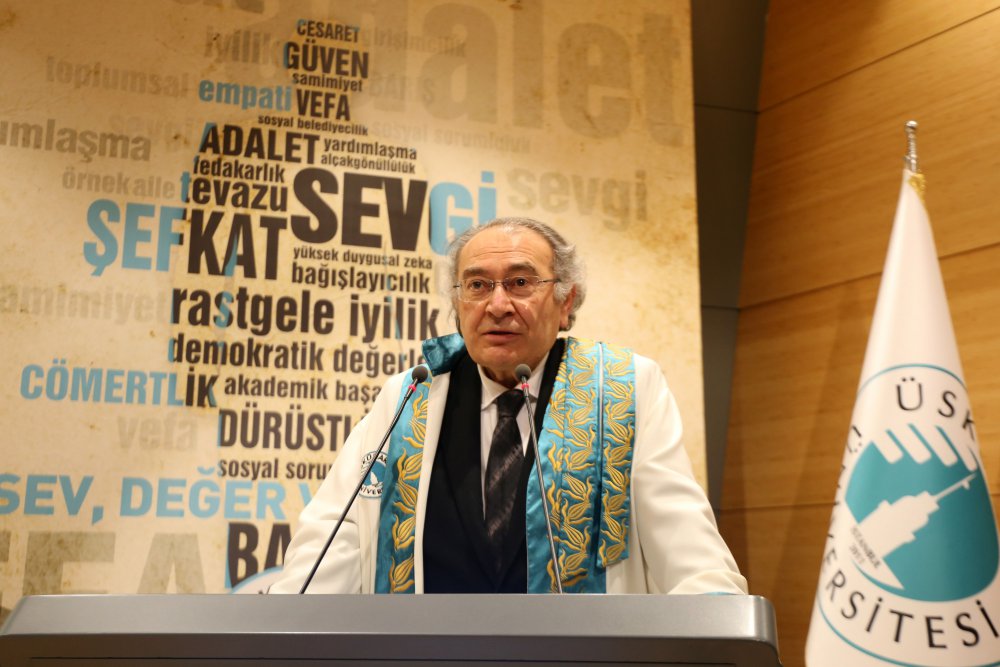 Üsküdar Üniversitesi Merkez Yerleşkesi Nermin Tarhan Konferans Salonu’nda düzenlenen ödül töreninin açılış konuşmasını Üsküdar Üniversitesi Kurucu Rektörü Prof. Dr. Nevzat Tarhan yaptı.