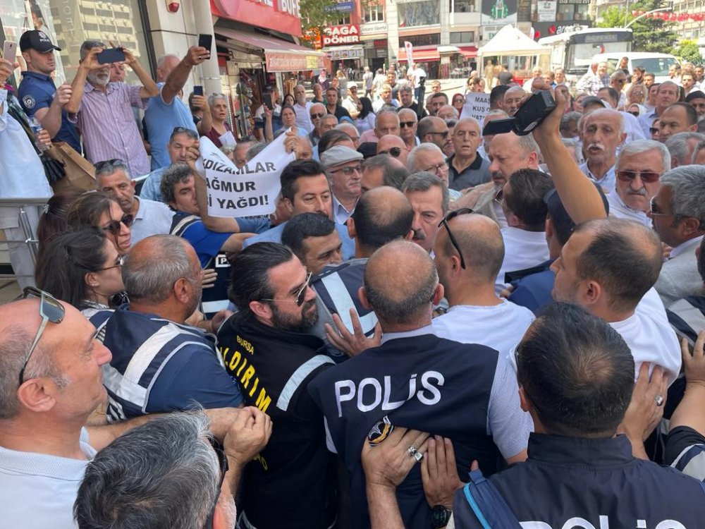 İYİ Parti Bursa Milletvekilleri Hasan Toktaş ve Selçuk Türkoğlu polise engel olmamaları gerektiğini söylediler ve polisin el ile müdahalesine de tepki gösterdiler.