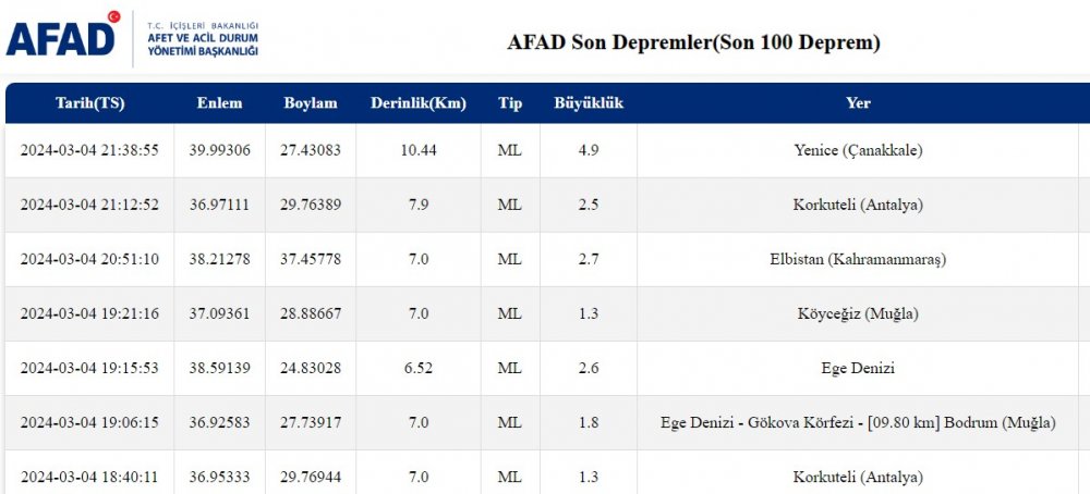 AFAD- Afet ve Acil Durum Yönetimi Başkanlığı'nın verilerine göre depremin 10,44 kilometre derinliğinde gerçekleştiği ve 4.9 büyüklüğünde olduğu anlaşıldı.
