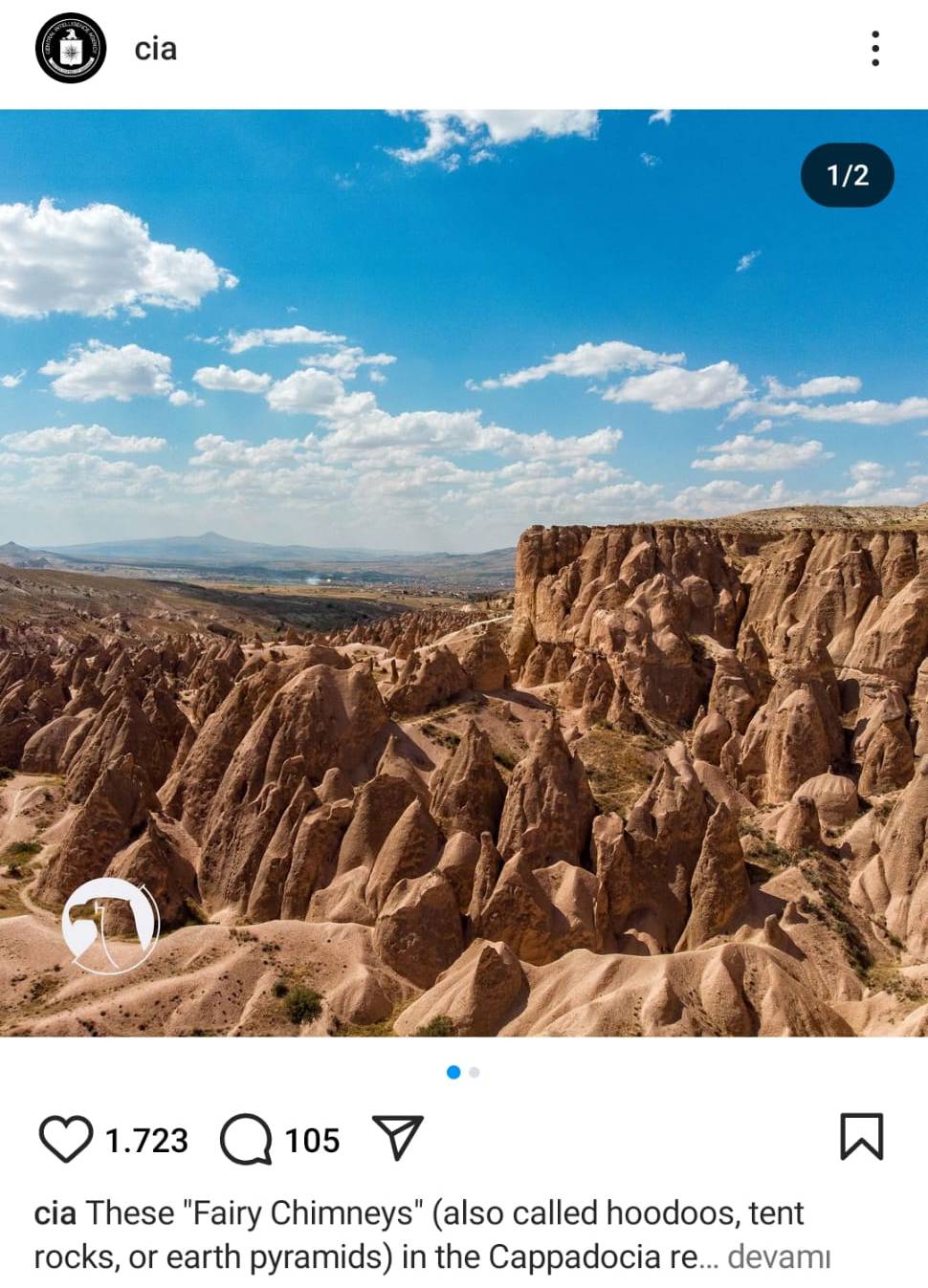 CIA, Kapadokya’daki Peri Bacalarının fotoğrafını paylaşıp şu ifadeleri kullandı: