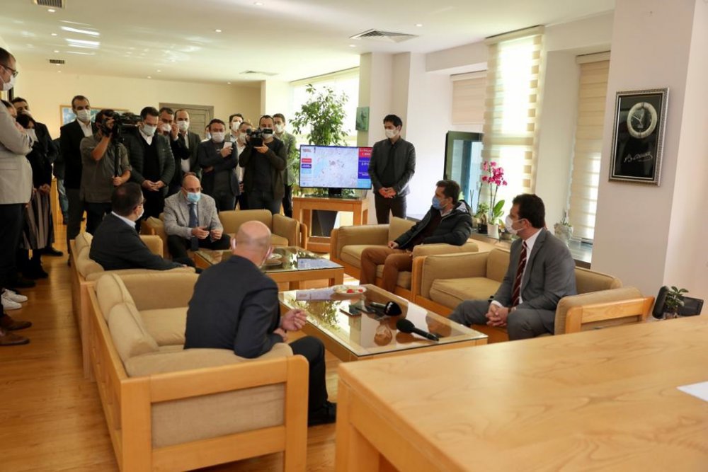 İstanbul Büyükşehir Belediye (İBB) Başkanı Ekrem İmamoğlu, 30 Ekim günü, saat 14.51’de 6.9’luk şiddetinde depremle sarsılan İzmir’i, kurmaylarıyla beraber ziyaret etti. İzmir Büyükşehir Belediye Başkanı Tunç Soyer’le İzmir Sanat Çalışma Ofisi’nde bir araya gelen İmamoğlu’na, İBB Sözcüsü ve Başkan Danışmanı Murat Ongun, Başkan Danışmanı Yiğit Duman, İBB Genel Sekreter Yardımcıları Mahir Polat, Gürkan Alpay, İmar ve Şehircilik Daire Başkanı Gürkan Akgün, Deprem Risk Yönetimi Daire Başkanı Tayfun Kahraman, İmar A.Ş. Genel Müdürü Onur Soytürk, KİPTAŞ Genel Müdürü Ali Kurt, İstanbul Planlama Ajansı Başkanı Emrah Şahan ile İBB Meclis üyeleri Tarık Balyalı, Fidan Aslan Eroğlu, Önder Turmuş eşlik etti.