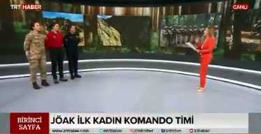 TRT Haber ekranlarında Nilgün Balkaç'ın sunduğu "BİRİNCİ SAYFA" adlı proğrama konuk olan J.Tğm Sümeyra Karlı, J. Astsb. Bşçvş. Fatma Öztürk Çiçekli ve Astsb. Çvş. Hacer Akkuş, bu mesleğe nasıl girdiklerini, mesleki şartları ve gördükleri eğitimleri anlattılar.