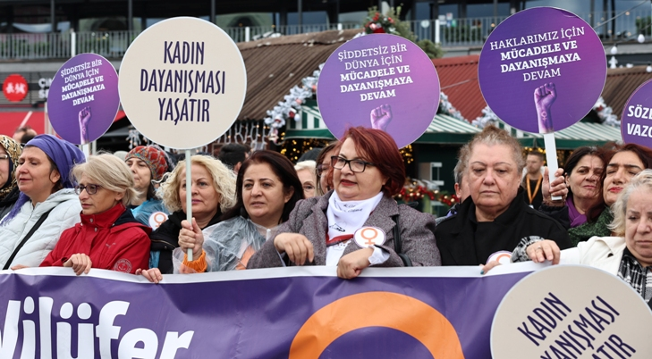 Nilüfer Belediye Başkan Yardımcısı Dr. Sibel Özer de kadınların mücadelesine destek vererek, günün anlam ve önemine dikkat çekti. Özer, “Bizler mücadele eden, birbirinin hayatına dokunan, birbirinden öğrenen ve güç alan kadınlarız. Elbette yaşadığımız ülkeyi, kadınların ve tüm insanların eşit ve özgür olduğu, herkesin insanca yaşadığı bağımsız, özgür, laik bir ülkeye dönüştürmek için mücadele ediyoruz. Bu mücadelede de en büyük güç, birbirimizle kuracağımız dayanışma, yan yana olmak, yalnız olmadığımızı bilmektir. Omuz omuza verirsek, aşamayacağımız engel yok. Her savaşta, her doğal afette görüyoruz ki en çok etkilenenler yine kadınlar ve çocuklar oluyor. En temel haklarımıza saldırılar olurken biz yine her zaman olduğu gibi mücadelemizi hatırlıyoruz. Önce yaşamak, sonra insan onuruna yaraşır bir yaşam sürmek istiyoruz. Özgür yarınlar istiyoruz. Haklarımızın gasp edilmediği eşit bir gelecek istiyoruz. Her yıl, her 25 Kasım’da bu taleplerimizi hatırlıyor, bunları duyurmak için bir araya geliyoruz. Haklıyız, güçlüyüz ve kararlıyız. Hiçbir zaman geri adım atmayacağımıza söz veriyoruz” şeklinde konuştu.
