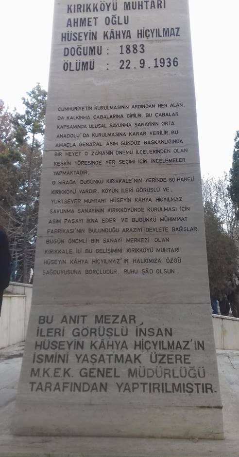 Kırıkkale İlinin kurucusu ve şahsi arazilerini, milli duygularla MKEK Savunma Sanayi Fabrikalarının kuruluşu için Atatürk eliyle devlete bağışlayan Hüseyin Kahya Hiçyılmaz'ın, hayattaki en büyük torunu İsmet Doğan Hiçyılmaz hakkın rahmetine kavuştu. Bir süredir tedavi gördüğü Kırıkkale Üniversitesi Tıp Fakültesi'nde hayata veda eden Hiçyılmaz 86 yaşında idi.