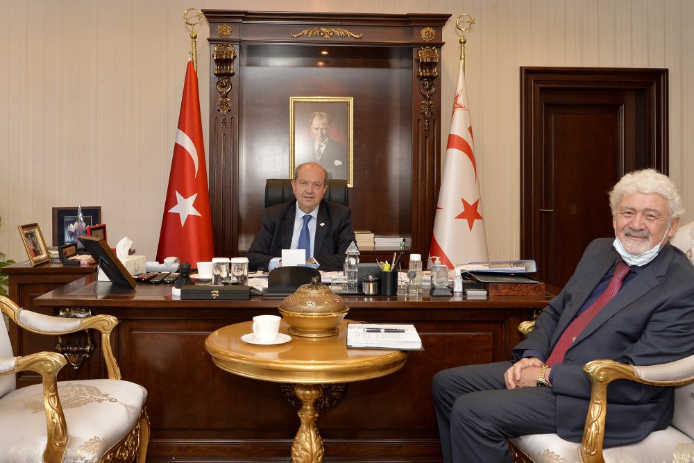 KKTC Cumhurbaşkanı Ersin Tatar, Kıbrıs İlim Üniversitesi Mühendislik Fakültesi Dekanı Prof. Dr. Ata Atun’u kabul etti.
