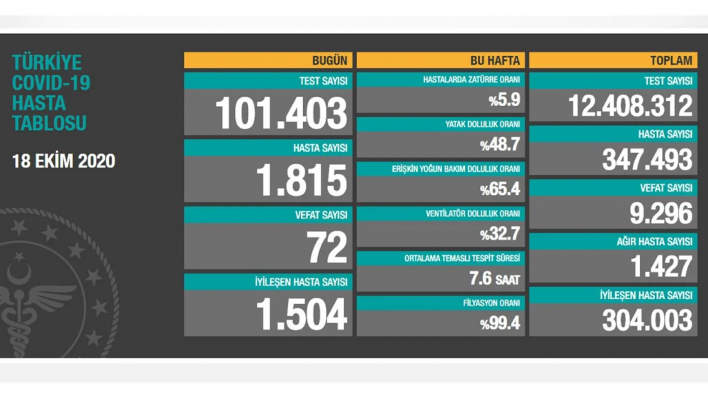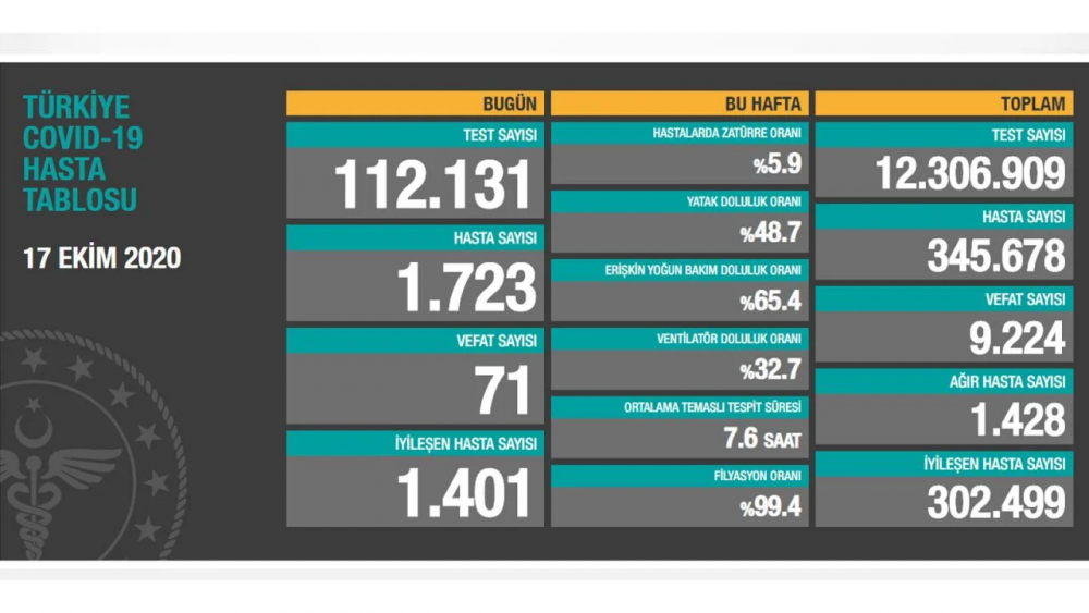 Bugün yapılan testlerde 1.723 yeni hasta tespit edildi. Ağır hasta sayısını düşürecek olan hastalığın bulaş yollarını engellemektir. Bunun için şuan en önemli silahımız tedbirlere birlikte uymak. Tedbirlere uyarsak kazanan biz olacağız.