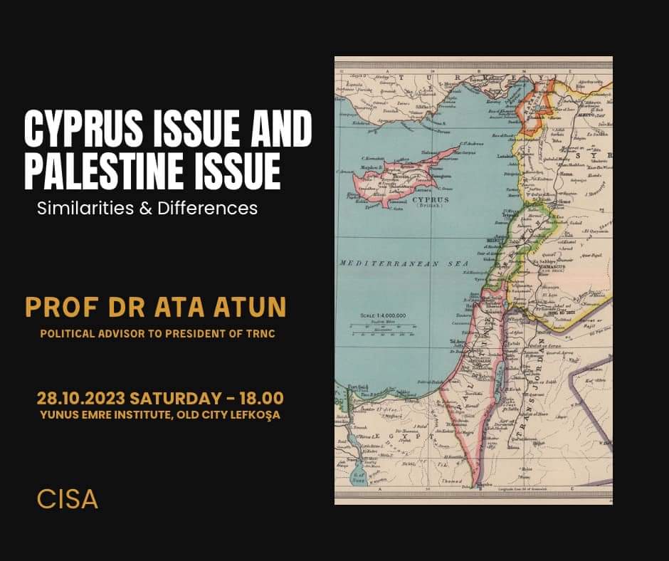 KKTC Uluslararası Öğrenci Birliği tarafından Yunus Emre Enstitüsünün Lefkoşa Merkezindeki Konferans Salonunda Cumartesi akşamı, Prof. Dr. Ata Atun, KKTC'de eğitimlerine devam eden Uluslararası Öğrencilerimize yönelik, özellikle içeriğinde Filistin ile Kıbrıs adasının tarihlerinin ve Kıbrıs Türklerinin varoluş mücadelesinin de yer aldığı, "Kıbrıs ve Filisitn, Benzerlikleri ve Ayrılıkları" başlıklı bir konferans verdi.