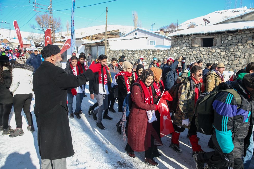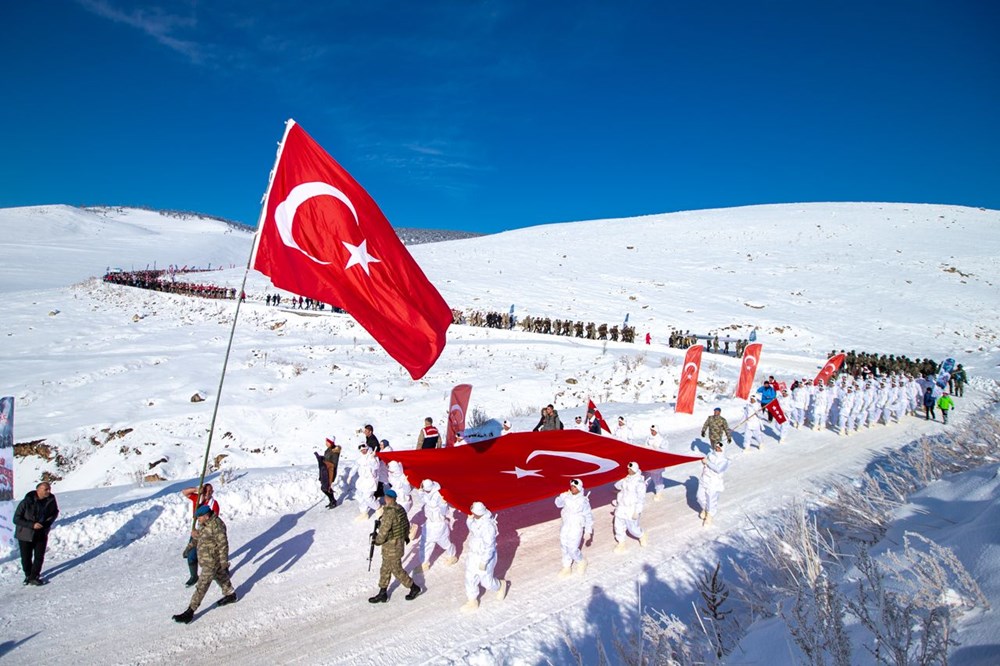 Kars'ın Sarıkamış ilçesinde, Sarıkamış Harekatı'nın 105. yılı anma etkinlikleri çerçevesinde düzenlenen yürüyüş sona erdi. Yürüyüşe Türkiye'nin birçok ilinden vatandaş katıldı.