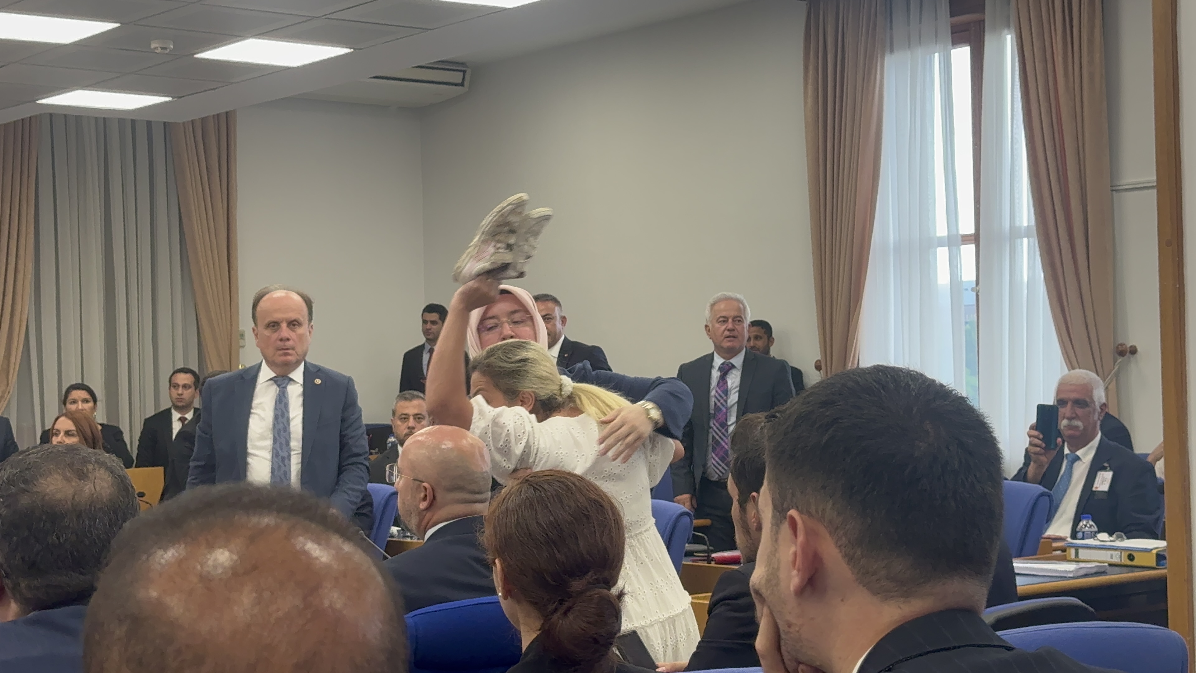 Mahra Melin Pınar'ın annesi Derya Pınar, muhalefet sıralarına çocuğunun ayakkabısını fırlattı