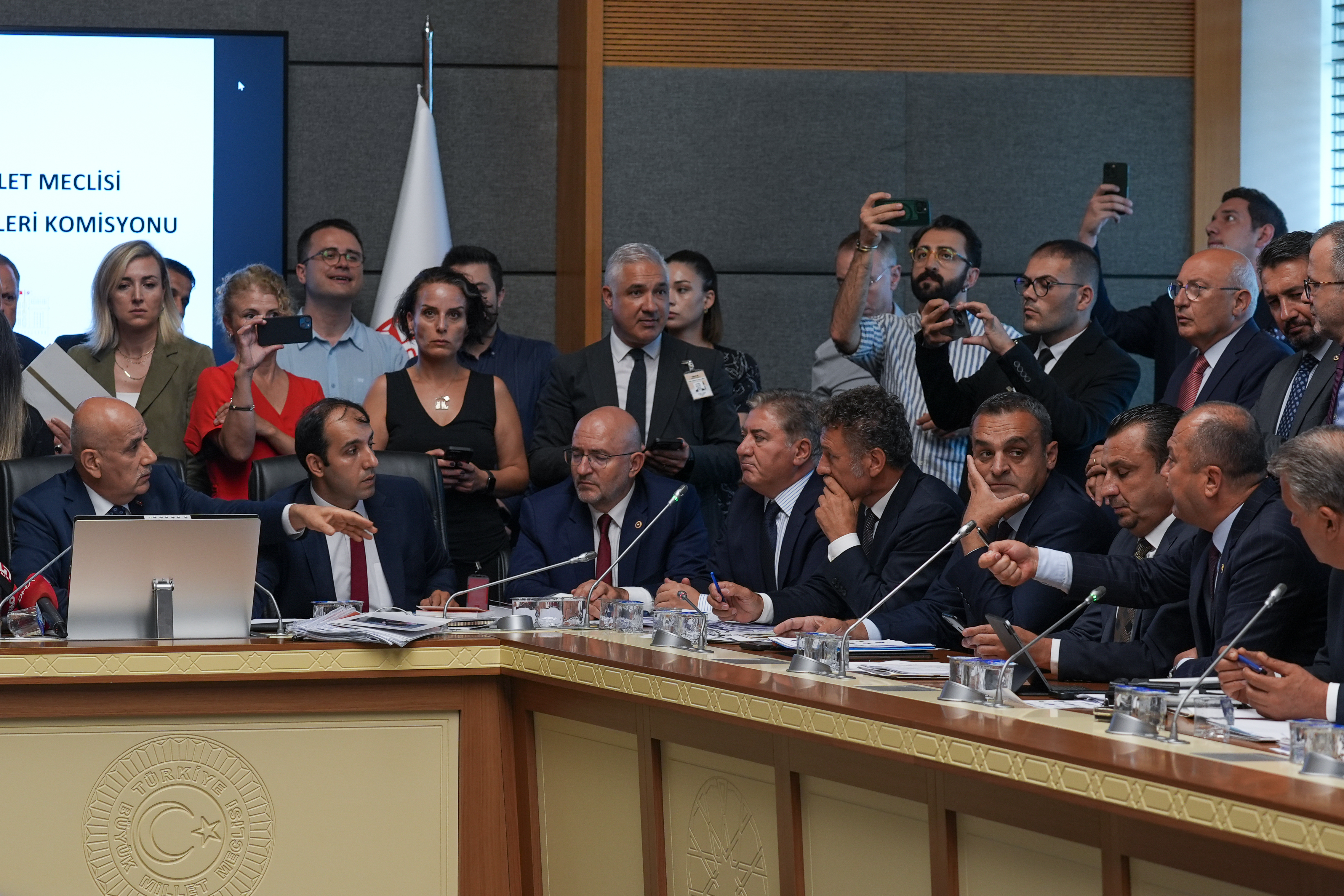 Komisyon görüşmelerinde salonda yer olmadığı ve daha büyük bir salona geçilmesine ilişkin gelen talepler üzerine tartışma çıktı ve görüşmelere başlamadan yarım saat ara verildi. Komisyon Başkanı AKP Kahramanmaraş Milletvekili Kirişci, gazetecileri salondan dışarı çıkartacağını söyledi.