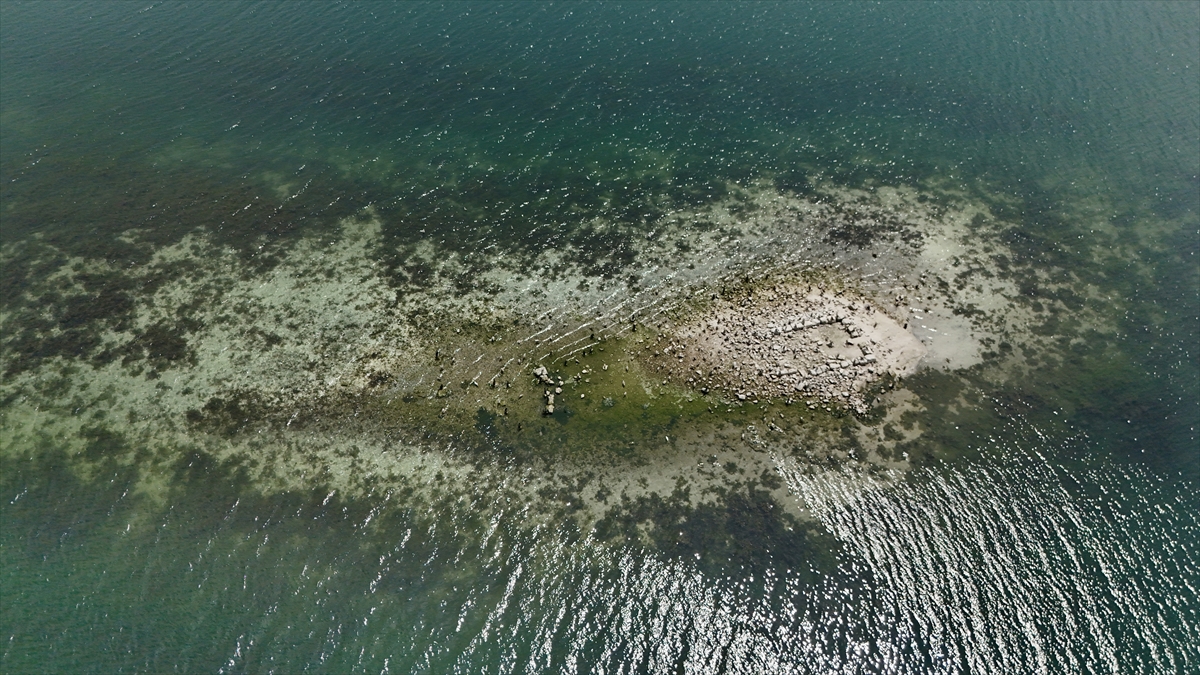 Göldeki suyun çekilmesi sonucu tarihi olduğu değerlendirilen taş kalıntılar ortaya çıktı, sandallar karaya oturdu.