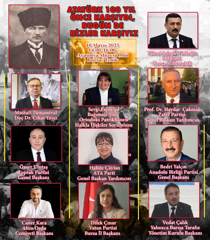 Bağımsız Türk Ortodoks Kilisesi öncülüğünde yapılan İznik’teki protestoda yaptığı açıklamasında, “Bu kadim topraklar Türk milletinin alın teriyle yoğrulmuş, şehit kanıyla mühürlenmiş vatanıdır! Bu kutsal topraklarda hiç kimse din kisvesi altında entrika çeviremez.” ifadelerini kullanan Türkoğlu, İznik’te toplanması planlanan konsilin sadece bir dini etkinlik değil, alenen Türkiye Cumhuriyeti’nin egemenliğini hedef alan emperyal bir kalkışma olduğunu vurguladı.
