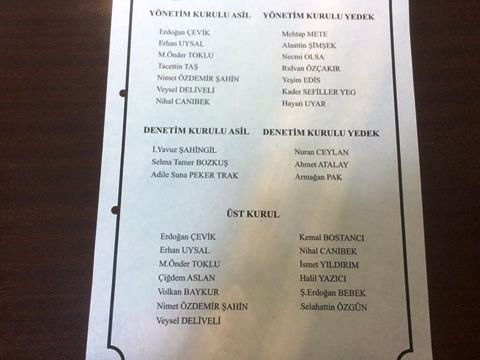 Genel Kurul, delege adaylarından üç yıl süre için Erdoğan ÇEVİK, Erhan UYSAL, M. Önder TOKLU, Tacettin TAŞ, Nimet Özdemir ŞAHİN, Veysel DELİVELİ ve Nihal CANIBEK'i "yönetim kurulu"na seçerken,
