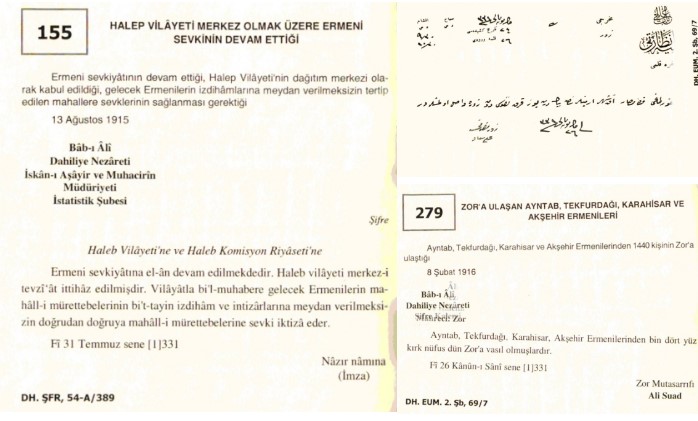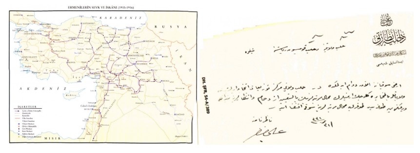 1915- 1916 Ermeni tehciri iskan (Yusuf Sarınay (Proje Yöneticisi), Osmanlı Belgelerinde Ermenilerin Sevk ve İskanı (1878-1920), T. C. Başbakanlık Devlet Arşivleri Genel Müdürlüğü, Ankara, 2007.) bölgeleri haritası ile iskan belgesi örnekleri: