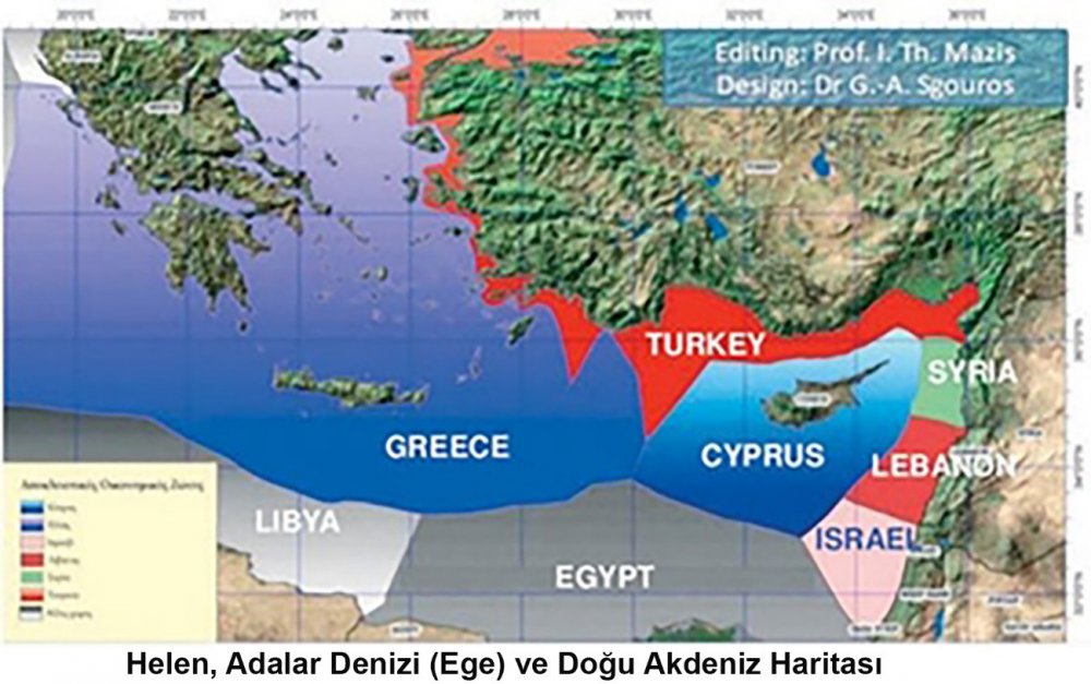 Prof. Mazis ve Dr. Sgouros tarafından hazırlanan Helen (Münhasır Ekonomik Bölge) haritası kimin yayılmacı olduğunu çok iyi bir şekilde gözler önüne sermektedir.