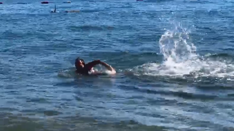Daha önce yüzdüğüm iskeleye geldiğimde ilk kez denizi bu kadar önü açık görüyorum, çünkü iskeleye bağlı balıkçı tekneleri denize açılmışlar. Karşı dağlar sanki Çin resimlerinden canlanmış gibi. Bir grup karga ve martı dönüp durmakta etrafımda. Rüzgar da deniz de okşuyor bedenimi bu Eylül yumuşaklığında. Denizin ışığı sanki tüm etrafı sarmış. Küçük bir iskelede yalnızım ve yine zenginim. En yakın kişi iki yüz metre ileride. Saçımı ıslatmamak için bonemi takıyorum, malum otobüslerdeki havalandırma hasta yapmak için birebir. Deniz gözlüğümü de taktım, geriye bu zenginlikle kucaklaşmam kaldı. Hooop cup! Balıklarla, martılarla yüzerken kendimi Melissa Vargas gibi hissediyorum!
